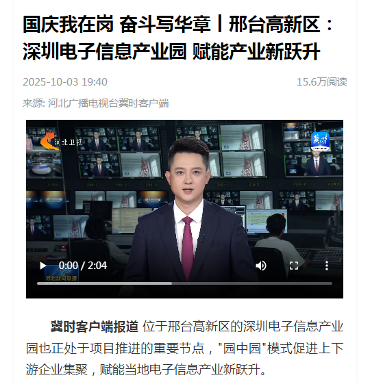 国庆我在岗 奋斗写华章丨邢台高新区:深圳电子信息产业园 赋能产业新跃升 2025-10-03 19:40 15.6万阅读 来源: 河北广播电视台冀时客户端 冀时客户端报道 位于邢台高新区的深圳电子信息产业园也正处于项目推进的重要节...