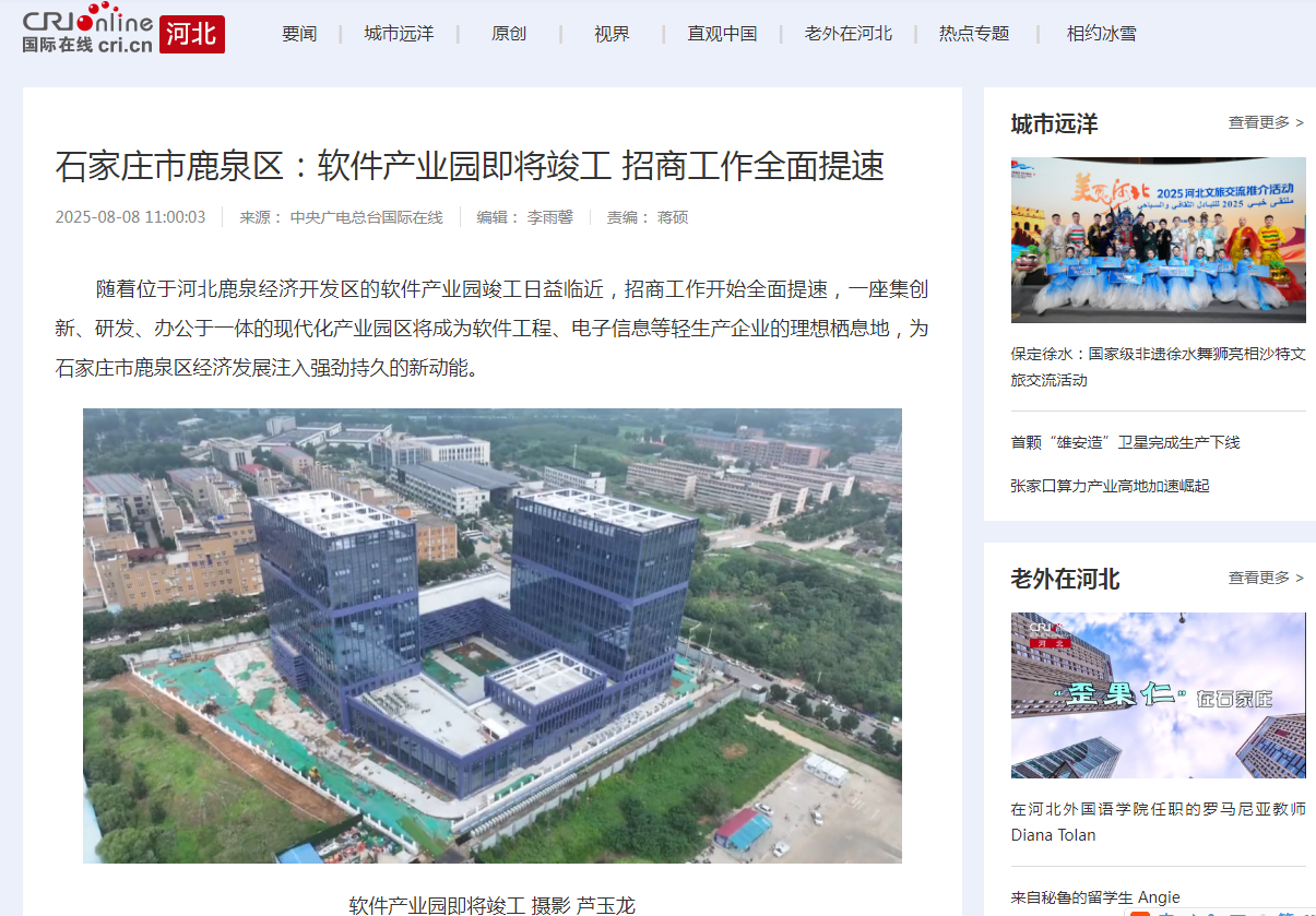石家庄市鹿泉区:软件产业园即将竣工 招商工作全面提速 2025-08-08 11:00:03来源: 中央广电总台国际在线编辑: 李雨馨责编: 蒋硕 随着位于河北鹿泉经济开发区的软件产业园竣工日益临近,招商工作开始全面提速,一座集...