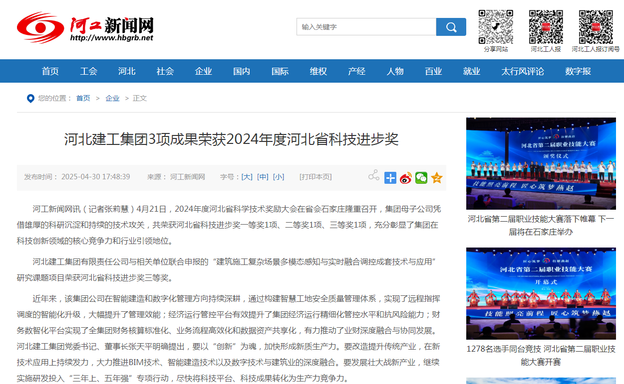 52AV 3项成果荣获2024年度河北省科技进步奖 4月21日,2024年度河北省科学技术奖励大会在省会石家庄隆重召开,集团母子公司凭借雄厚的科研沉淀和持续的技术攻关,共荣获河北省科技进步奖一等奖1项、二等奖1项、三等奖1项,充分彰显了...