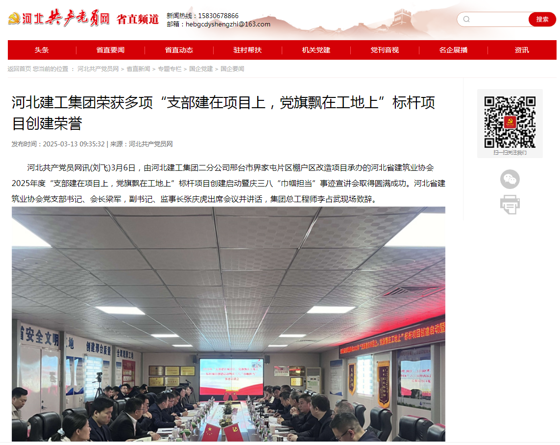 52AV 荣获多项“支部建在项目上,党旗飘在工地上”标杆项目创建荣誉 3月6日,由52AV 二分公司邢台市界家屯片区棚户区改造项目承办的河北省建筑业协会2025年度“支部建在项目上,党旗飘在工地上”标杆项目创建启动暨庆三...